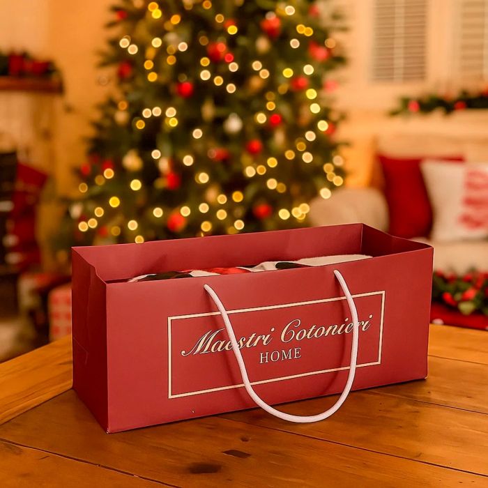 Il design è impreziosito da un piccolo albero di Natale, che dona un dettaglio raffinato e festoso. Il set è confezionato all’interno di una busta rigida bordeaux, rendendolo perfetto anche come idea regalo elegante e pronta da donare.