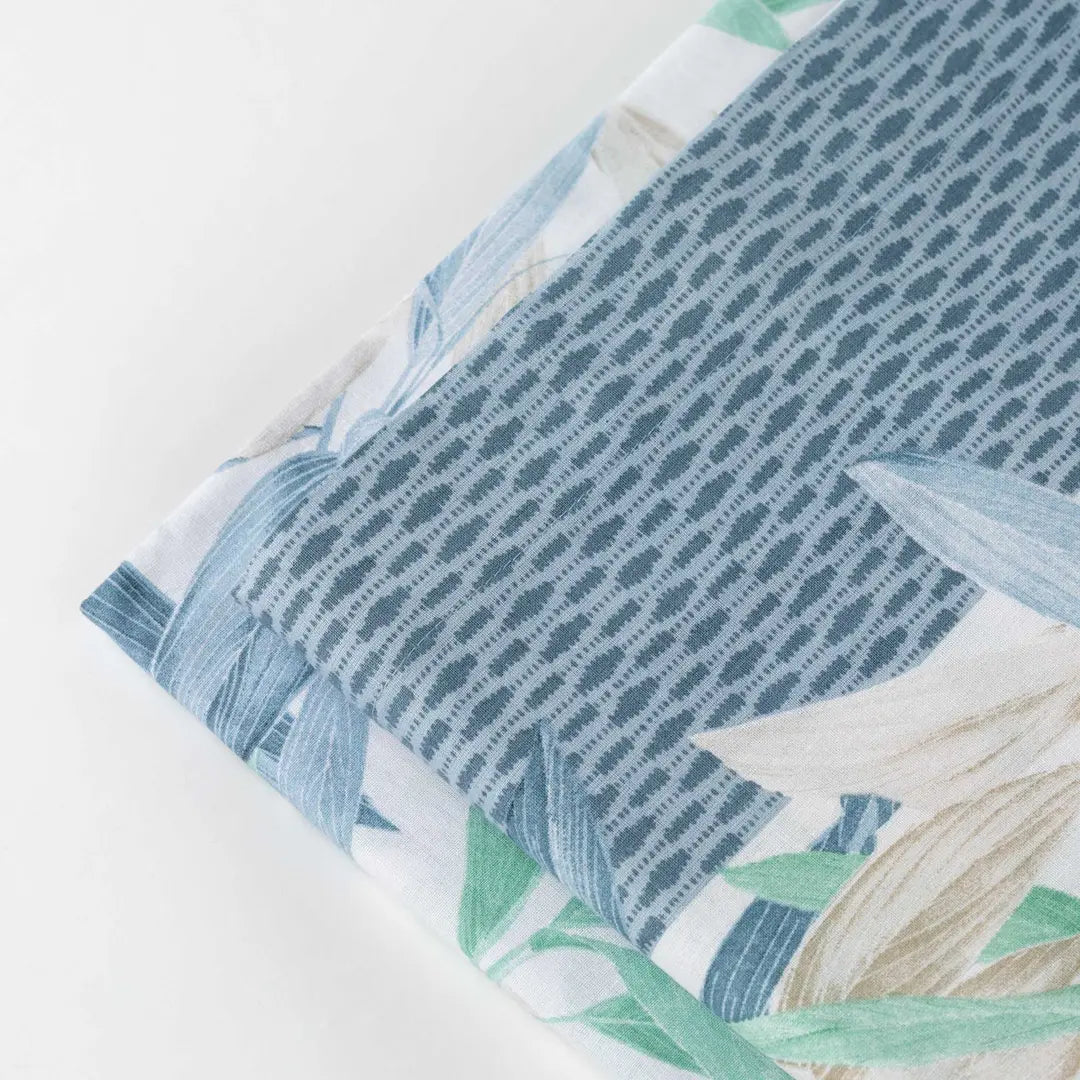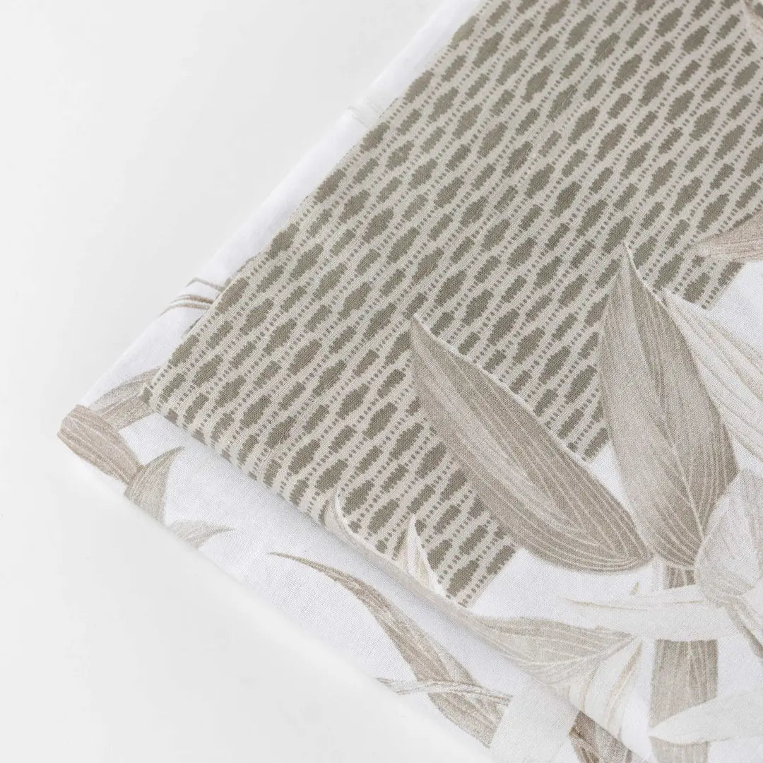 La confezione matrimoniale comprende il lenzuolo sopra da 240x290 cm, il lenzuolo sotto con angoli da 180x190 cm con bordo da 25 cm e due federe a sacco da 50x80 cm, coordinate nella stessa fantasia. Il cotone utilizzato è certificato OEKO-TEX, sinonimo di sicurezza, qualità e assenza di sostanze nocive.