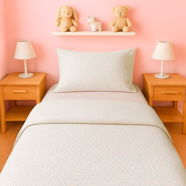 Porta nella cameretta un’atmosfera delicata e sognante con questo completo lenzuola singolo in puro cotone percalle Maestri Cotonieri. Il tessuto in percalle assicura una mano fresca, liscia e piacevole sulla pelle, perfetta per l’uso quotidiano. Un completo pratico, resistente ai lavaggi e curato nei dettagli, pensato per rendere il letto più accogliente e raffinato.