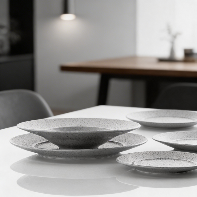 Un particolare smalto effetto pietra riveste i piatti e gli accessori della linea Terrea Grey, resistente e materica, per un pranzo non solo da assaporare, ma anche da toccare e da apprezzare al tatto. L'effetto granito continua anche all'interno dei piatti, che diventano così veri pezzi unici protagonisti della tavola.