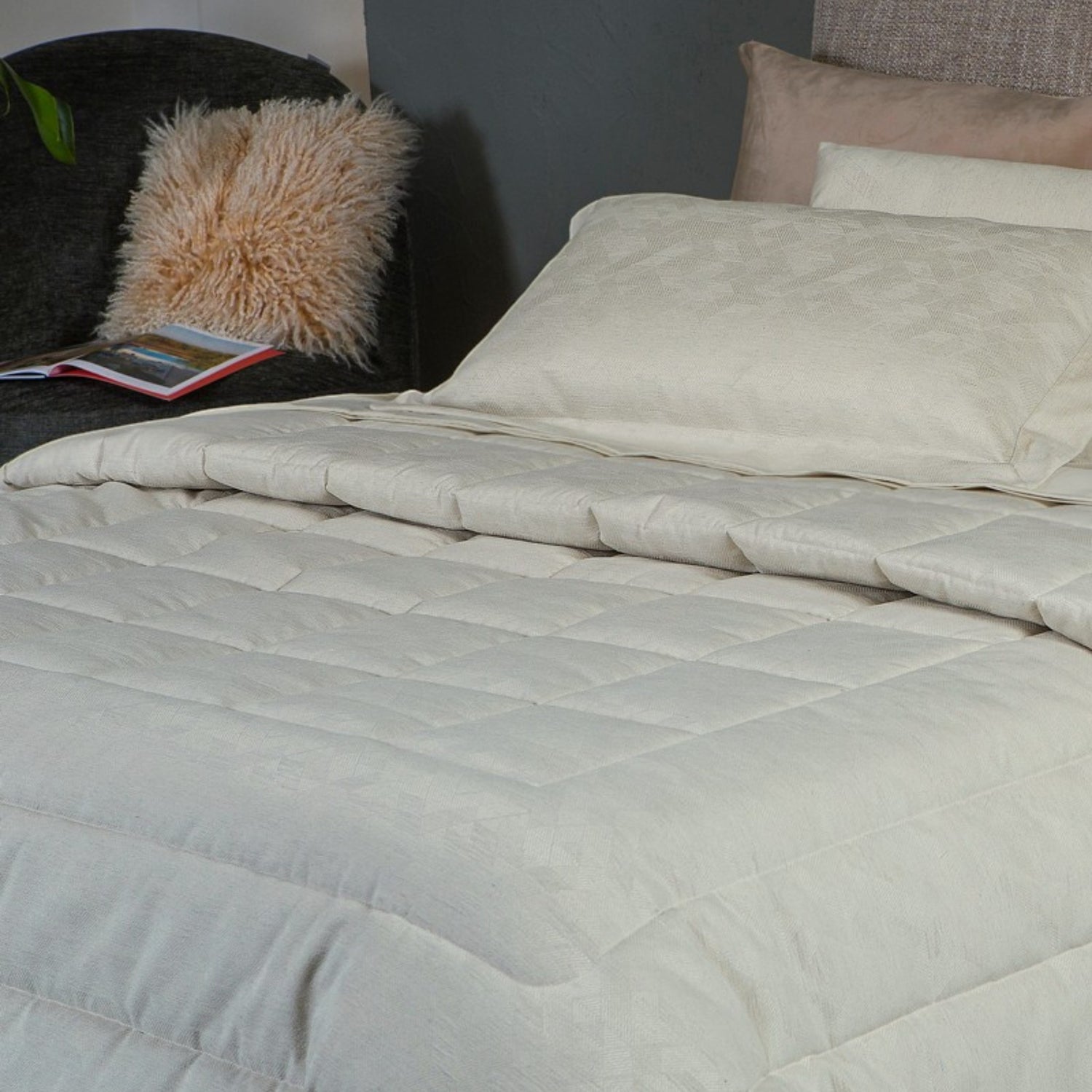 Trapunta in tessuto jacquard Eco Green, realizzato artigianalmente garantendo standard di sostenibilità ambientale.