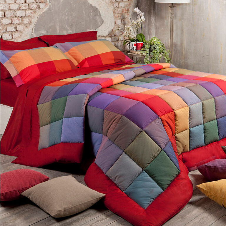 Trapunta invernale realizzata in percalle di cotone tinto filo 200 T.C. La trapuntatura segue il disegno a quadri del tessuto ed il bordo applicato in tinta unita esalta il motivo scozzese . Rifinitura a mano con angoli stondati. Vesti la tua camera da letto con lo stile e la qualità inconfondibile di Tessitura Randi.