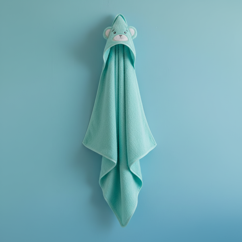 Triangolo baby con cappuccio animaletto in cotone 370 gsm linea oro – celeste, tiffany, rosa, beige