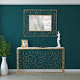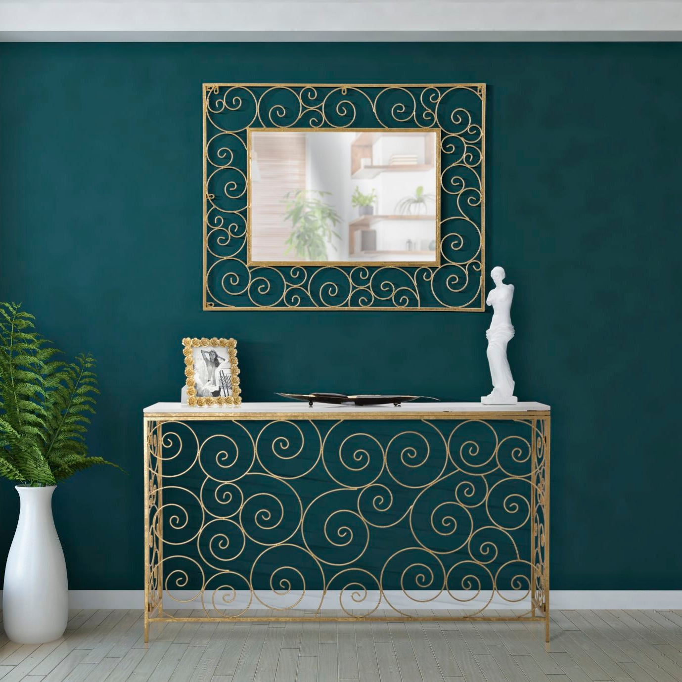 CONSOL SPIRAL - Console rettangolare in metallo dorato impreziosita dal piano in marmo bianco. Le particolari e morbide decorazioni geometriche donano un tocco di ricercatezza ad ogni ambiente.