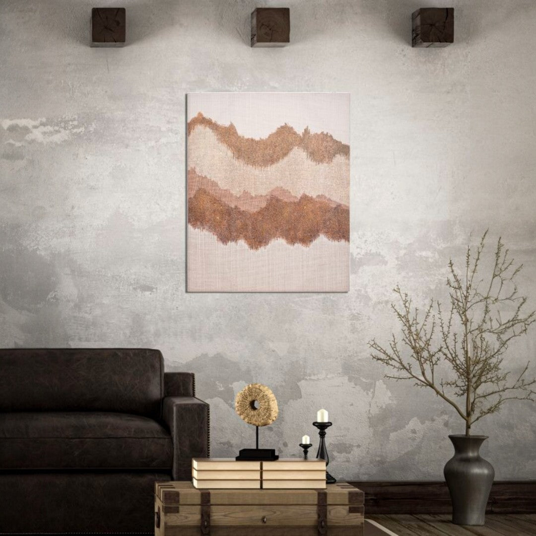DIPINTO SU TELA BROWNY - Dipinto su tela con telaio in legno dal disegno astratto che richiama le cime delle montagne. I colori caldi si sposano alla perfezione con qualsiasi tipologia di arredamento.