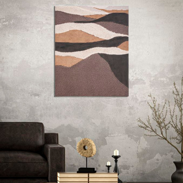 DIPINTO SU TELA DARKY - Dipinto su tela con telaio in legno dal disegno astratto che richiama le dune di un deserto. I colori caldi si sposano alla perfezione con qualsiasi tipologia di arredamento.