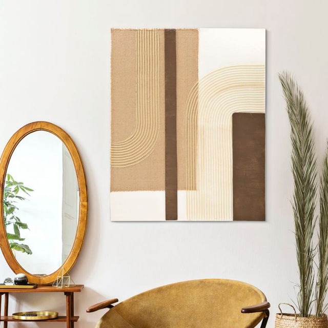 Una creazione moderna ed essenziale, perfetta per chi ama lo stile minimal e contemporaneo. Le sue forme geometriche pulite, nei toni naturali del beige, bianco e nero, creano un equilibrio visivo che dona eleganza e armonia agli spazi. Un’opera versatile, ideale per soggiorni, camere, uffici e ambienti arredati in stile moderno o scandinavo.