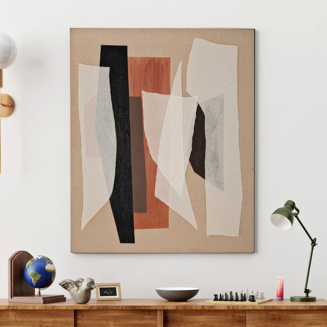 Un’opera moderna che unisce forme geometriche sovrapposte e colori caldi e neutri, creando un equilibrio visivo unico. La base in tela naturale, arricchita da dettagli materici, dona movimento e profondità, trasformando ogni parete in un punto focale di design. Perfetto per arredare soggiorni, camere o uffici dal gusto contemporaneo, questo dipinto si adatta sia ad ambienti minimal che a contesti più sofisticati.