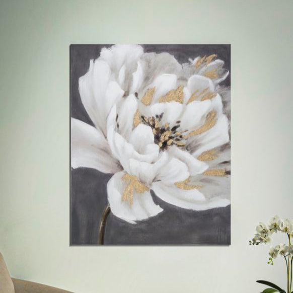 DIPINTO SU TELA WHITE/GOLD FLOWER - Dipinto su tela con intelaiatura in legno dal design floreale dai toni pastello che donano un tocco di relax ad ogni ambiente.