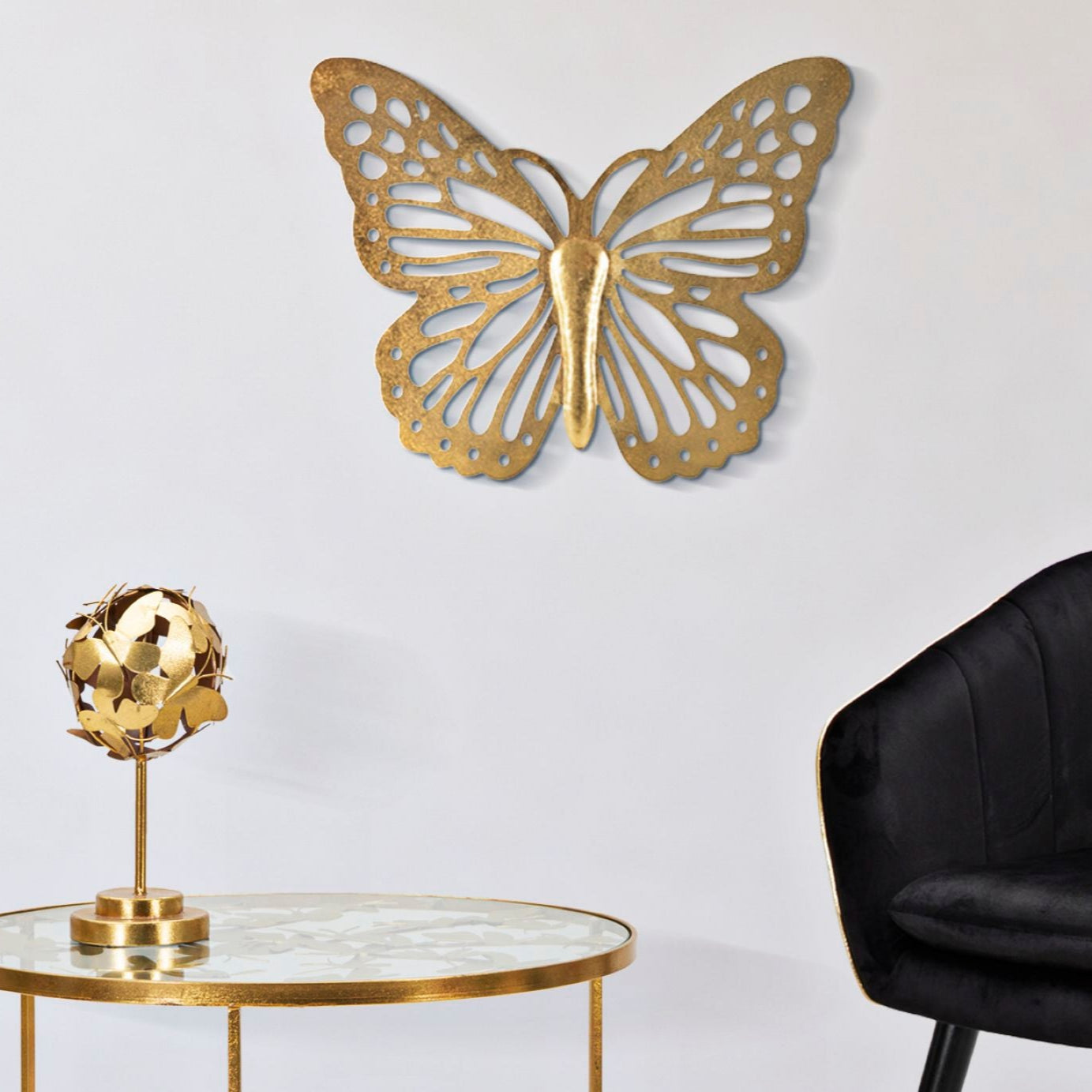 Elegante farfalla decorativa 3D da parete. Le linee essenziali e il design intagliato abbinati all'oro donano un tocco di classe e luminosità ad ogni ambiente.