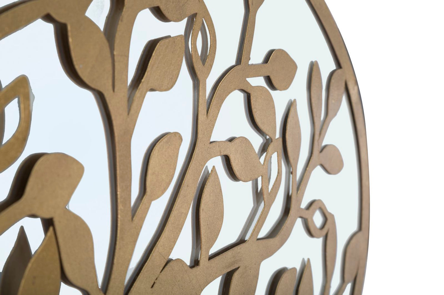 Realizzato in metallo dorato intagliato e applicato su base a specchio, è un complemento d’arredo raffinato che riflette la luce e arricchisce l’ambiente con un effetto elegante e luminoso.