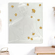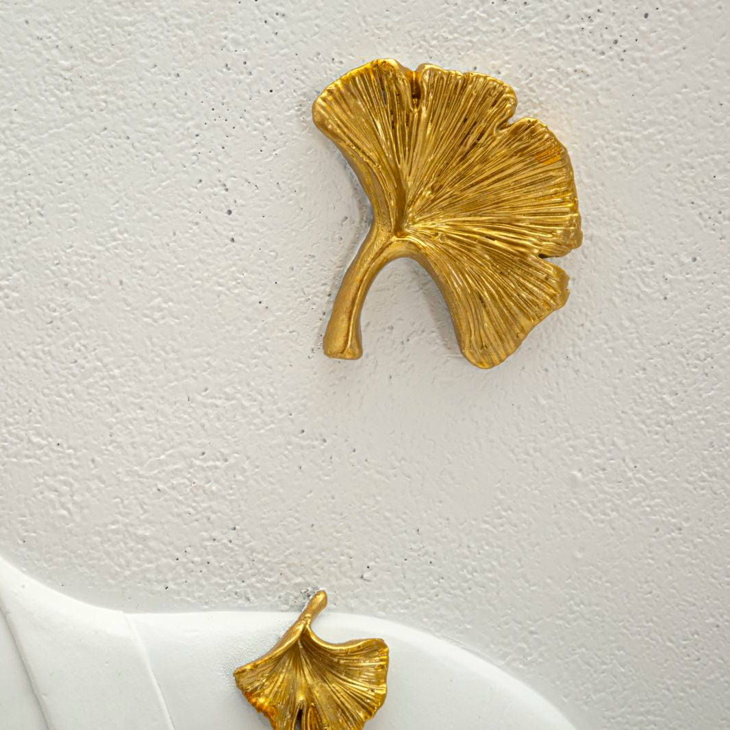Pannello decorativo 3D da parete in resina raffigurante Buddha in rilievo con eleganti foglie decorative dorate.