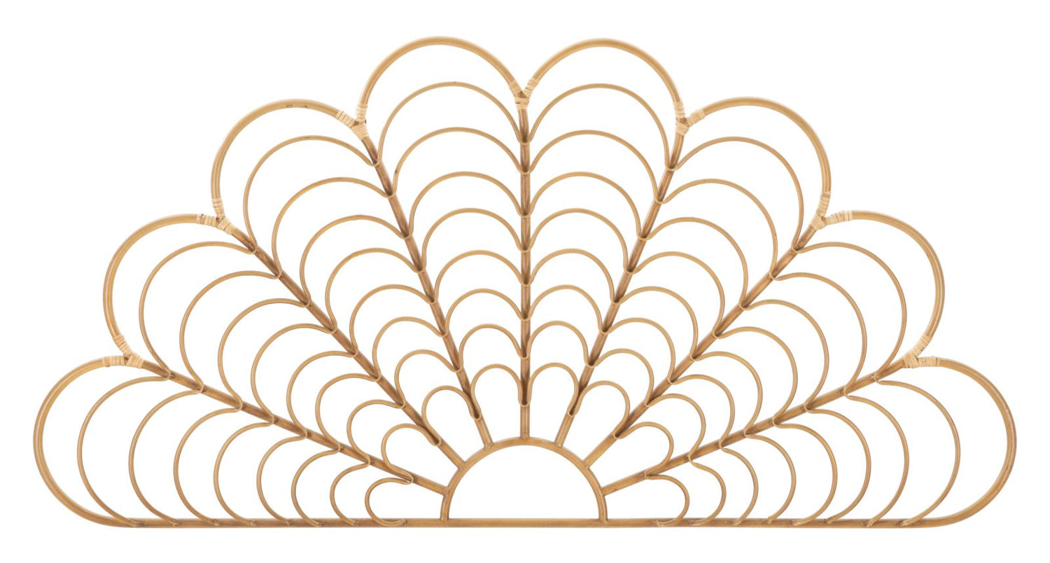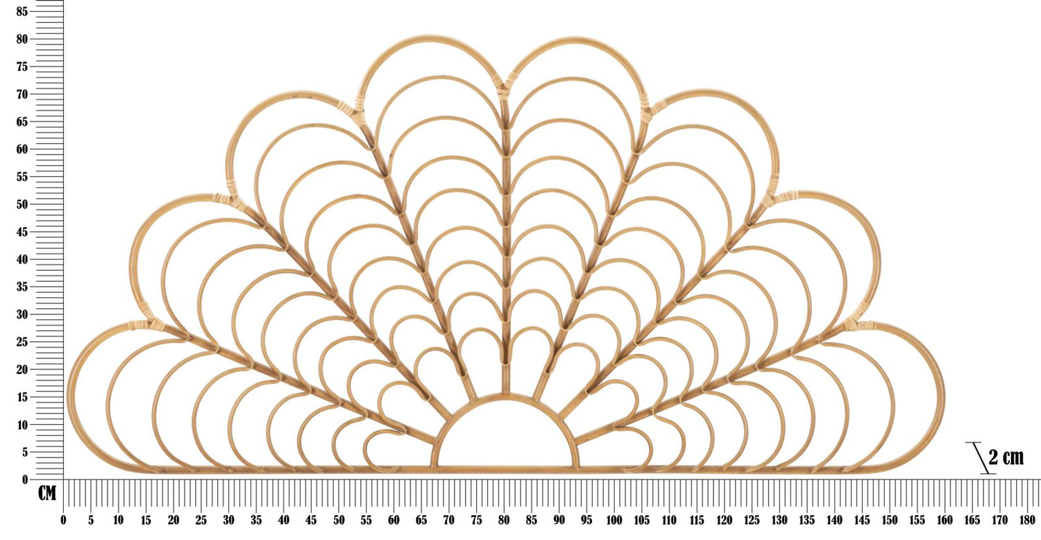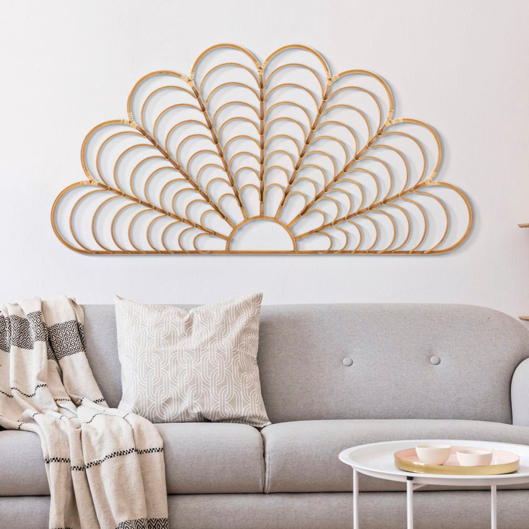Porta in casa la bellezza naturale del rattan intrecciato con questo elegante pannello a forma di ventaglio. Un complemento versatile che si adatta perfettamente come testata letto, decorazione da parete o divisorio creativo.