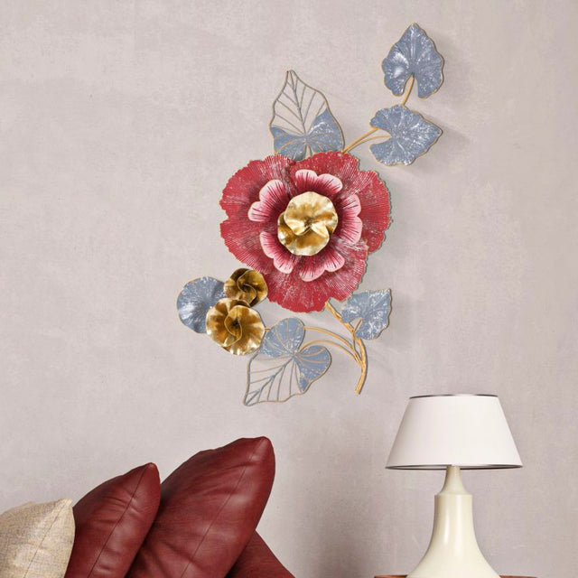 Un complemento d’arredo raffinato che unisce la forza del colore rosso con la luminosità dell’oro. Le foglie grigio metallizzato donano un contrasto elegante, creando un effetto artistico che arricchisce la parete con stile e originalità.