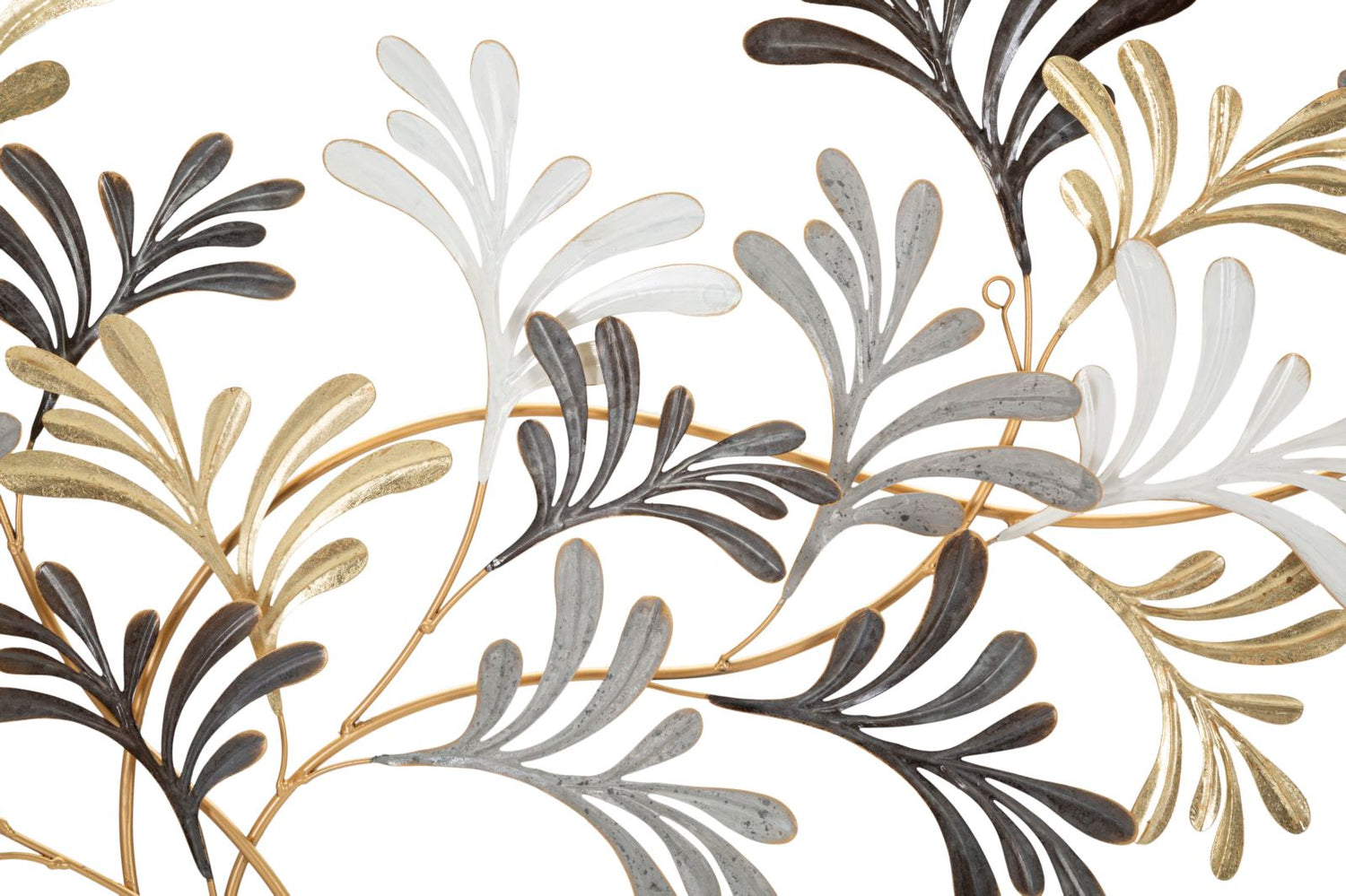 Un complemento d’arredo dal design elegante e armonioso, ideale per dare vita a pareti spoglie. Le foglie lavorate in metallo con finiture oro, grigio e nero si intrecciano creando movimento e raffinatezza.