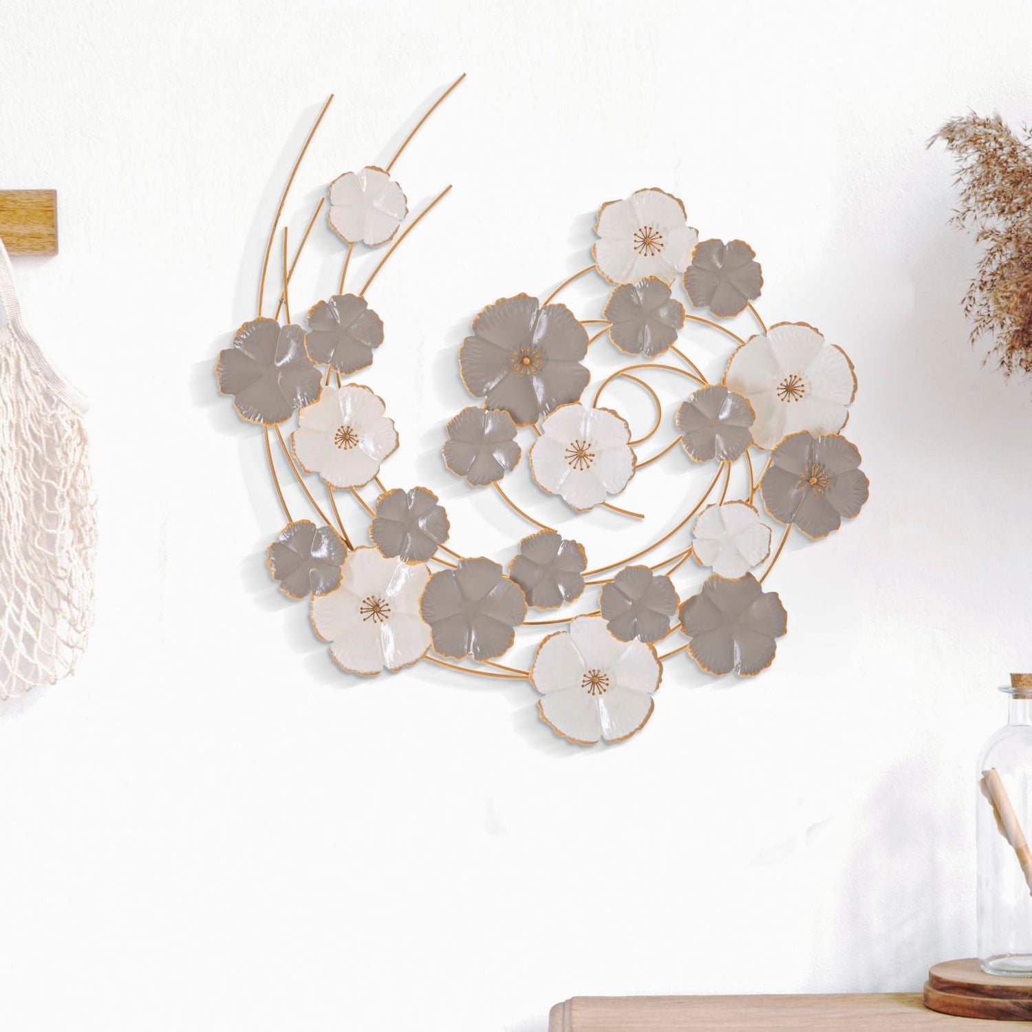 PANNELLO IN FERRO LOTLY - Pannello decorativo 3D da parete composto da un vortice di fiori.