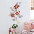Un complemento d’arredo che dona alla parete un tocco di stile e luminosità. I fiori rossi in metallo con dettagli dorati si intrecciano a foglie argentate, creando un effetto scenografico che valorizza salotti, camere da letto e ingressi.