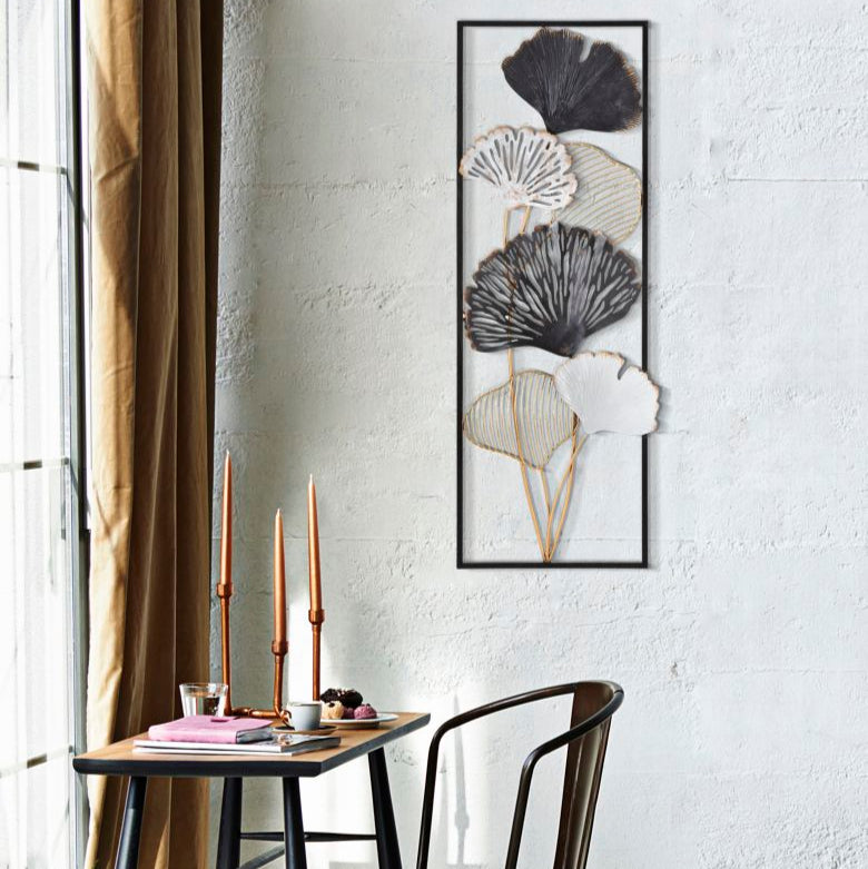 Pannello in metallo dal design che richiama la natura. I pannelli 3D sono il nuovo trend per decorare le pareti. Il metallo laccato si declina in forme geometriche, vegetali o animali che conferiscono un'allure glamour e sorprendente ad ogni ambiente.
