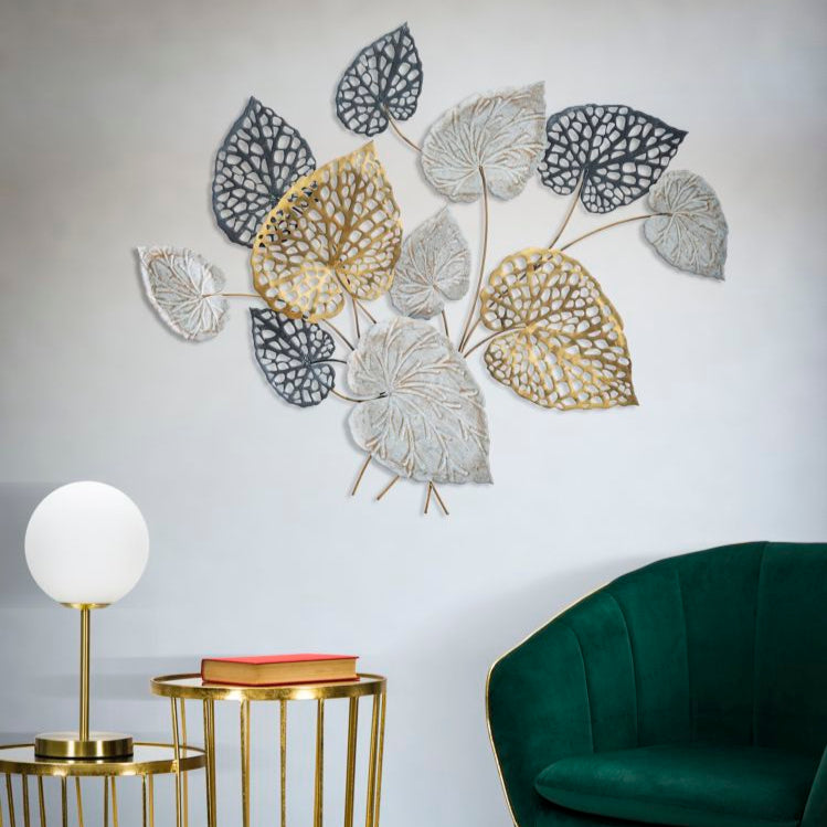 PANNELLO IN FERRO ORY -B- Pannello foglie in metallo. I pannelli 3D sono il nuovo trend per decorare le pareti. Il metallo laccato si declina in forme geometriche, vegetali o animali che conferiscono un'allure glamour e sorprendente ad ogni ambiente.