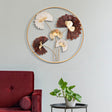 PANNELLO IN FERRO REDDY ROUND - Pannello decorativo 3D da parete composto da una serie di rami con foglie multicolore racchiuse in una struttura circolare.