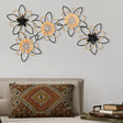 Pannello decorativo 3D da parete in metallo e rafia composto da fiori.