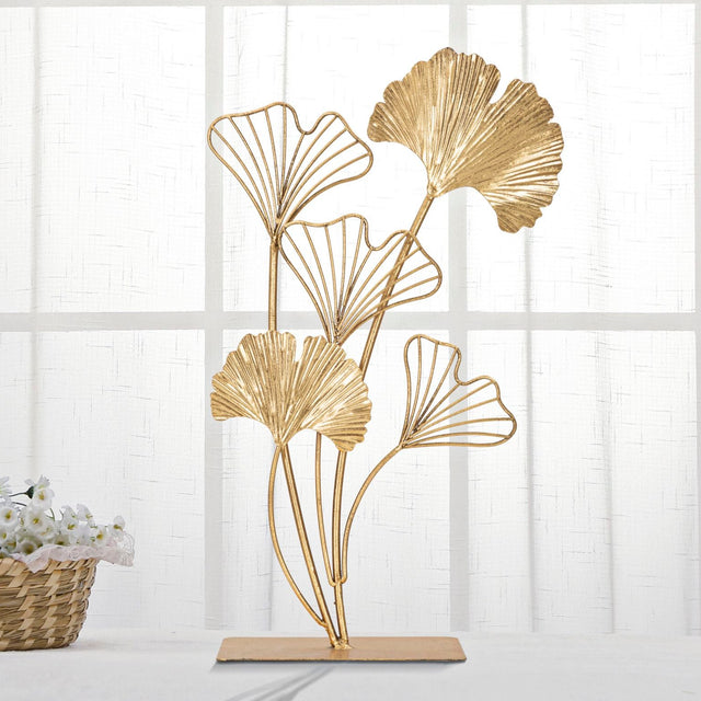 Decorazione in metallo dorato con foglie. I decor dorati sono un elemento irrinunciabile per dare un tocco glam ad ogni ambiente. Perfetti abbinati a colori neutri come il bianco ed il crema, audaci e retrò se accostati a tinte forti.