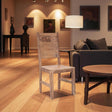 Robusta, elegante nella sua semplicità e capace di valorizzare ogni ambiente. Questa sedia in legno massello è caratterizzata da linee essenziali e dal fascino autentico del legno naturale. Perfetta per arredare cucine, sale da pranzo, taverne o ambienti dallo stile rustico e industrial.