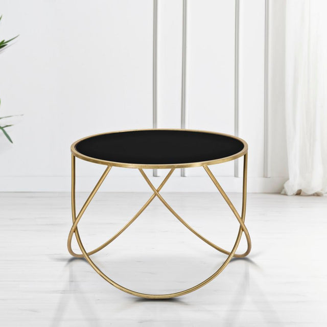 TAVOLINETTO RING - Tavolo da caffè rotondo in metallo e vetro dalle linee sinuose e accattivanti. Il dorato abbinato al nero crea un forte impatto. Un elemento lussuoso e glam per la tua casa.