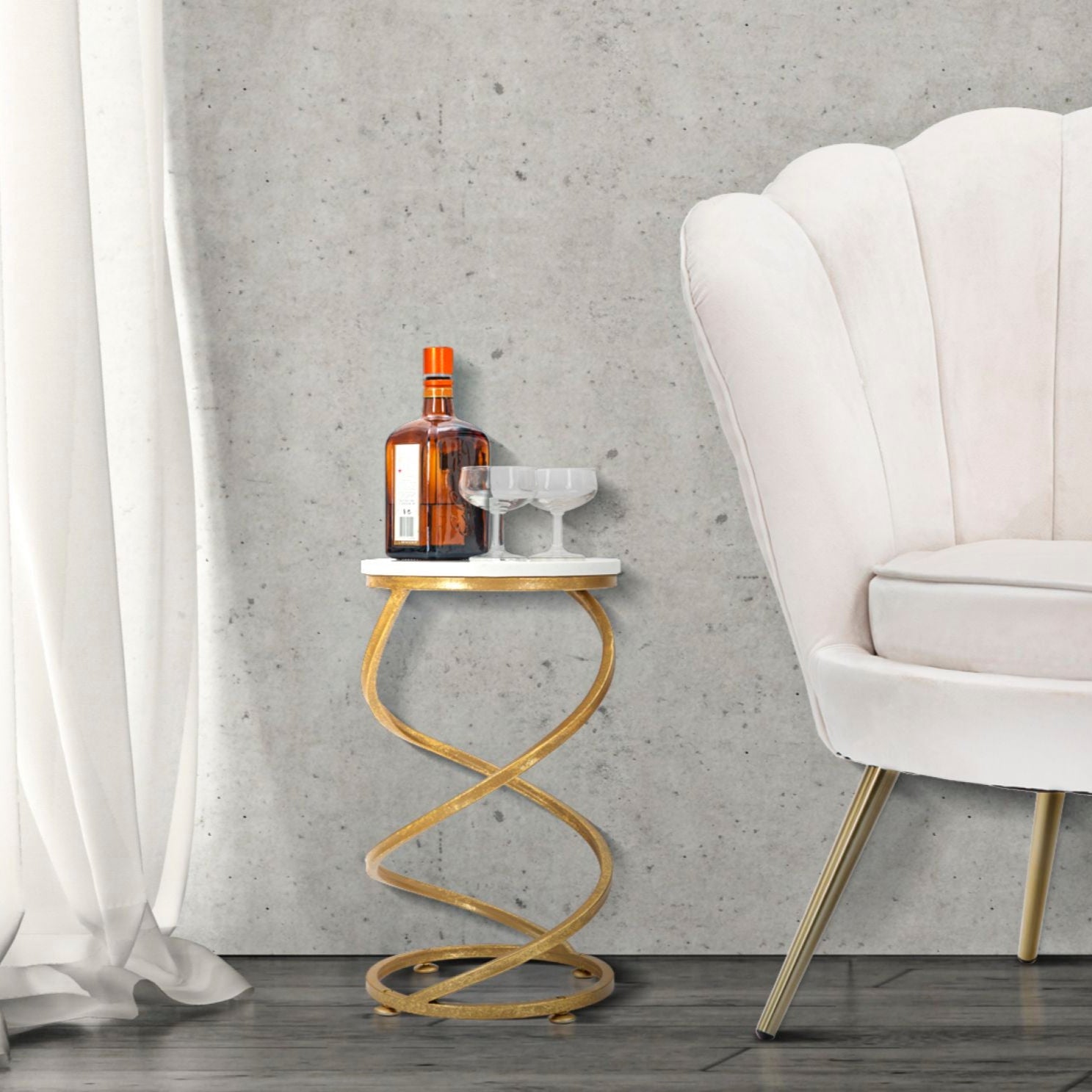 TAVOLINETTO SPIRAL MARBLE - Elegante tavolinetto in metallo dorato e piano in marmo bianco. Le linee dolci e sinuose creano il giusto equilibrio tra classico e glam contemporaneo.
