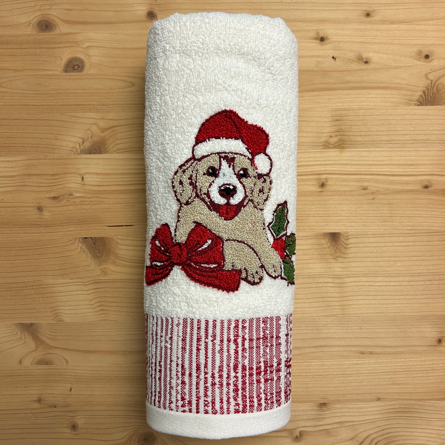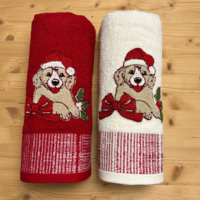 Pensate per accontentare quella ricerca di un tono raffinato, per accostare con cura le sfumature ai colori del proprio bagno. Elegante coppia di asciugamani in spugna di puro cotone idrofilo con decorazione a tema natalizio.