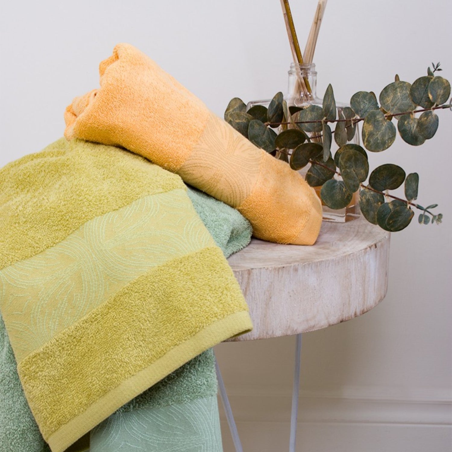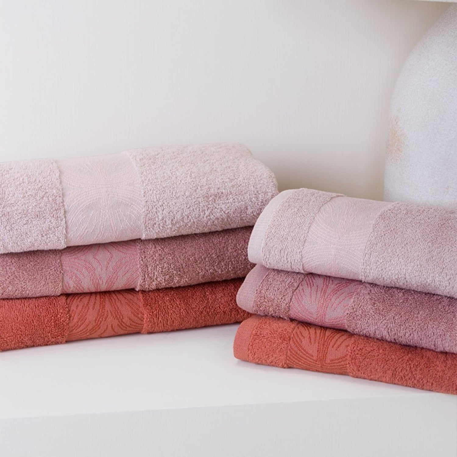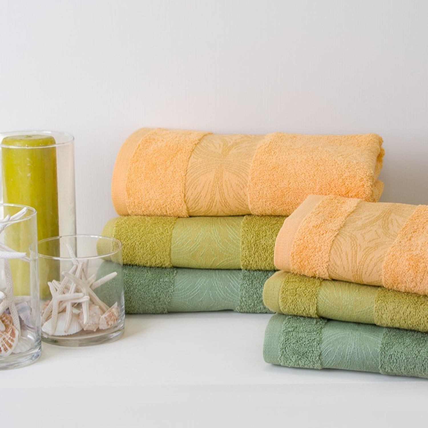 Set asciugamani 3 viso + 3 ospite in 100% spugna di cotone con bordi jacquard.