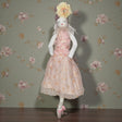 Graziosa bambola in stoffa dall’aspetto delicato e raffinato con vestito in tulle ricamato.
