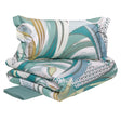 Completo copripiumino realizzato in percalle di cotone 200 T.C. La sacca e le federe a 3 volant sono stampati in digitale con motivi geometrici, il sotto con angoli è in tinta unita. Vesti la tua camera da letto con lo stile e la qualità inconfondibile di Tessitura Randi.