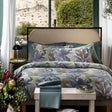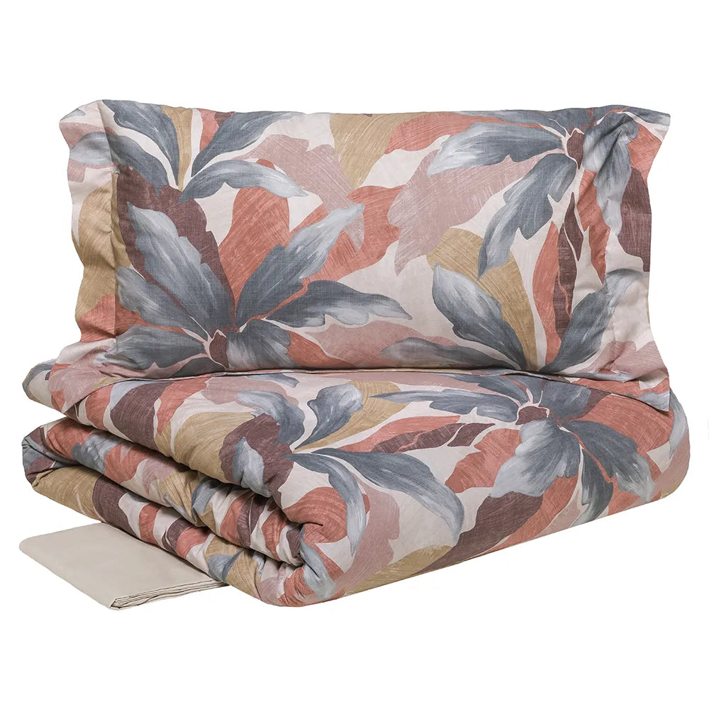 Completo copripiumino double face realizzato in percalle di cotone 200 T.C. La sacca e le federe a 3 volant sono stampati in digitale con motivi floreali, il sotto con angoli è in tinta unita. Vesti la tua camera da letto con lo stile e la qualità inconfondibile di Tessitura Randi.
