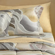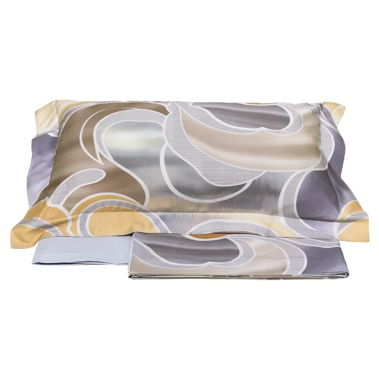 Completo lenzuola con balza a giorno realizzato in percalle di cotone 200 T.C. Il lenzuolo e le federe a 3 volant sono stampati in digitale con motivi geometrici, il sotto con angoli è in tinta unita. Vesti la tua camera da letto con lo stile e la qualità inconfondibile di Tessitura Randi.