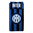 Il design riprende le iconiche strisce nerazzurre e il logo storico dell’Inter, simbolo di passione e appartenenza. Il lenzuolo sopra mette in risalto lo stemma centrale, mentre la federa con la scritta Inter aggiunge un tocco deciso e riconoscibile che rende unico ogni dettaglio.