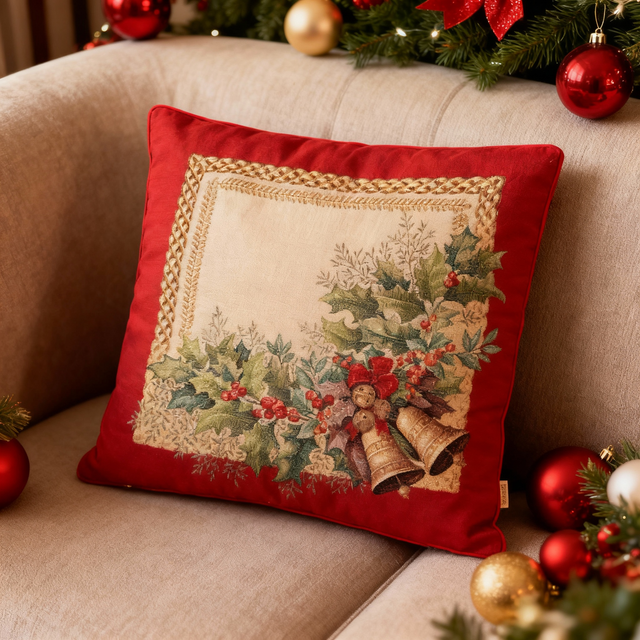 Decora la tua casa con il cuscino natalizio Karì, realizzato in pregiato tessuto Gobelin con filato Lurex che dona un tocco luminoso e festivo. Sfoderabile con zip, è completo di imbottitura in morbida fibra anallergica per il massimo comfort.