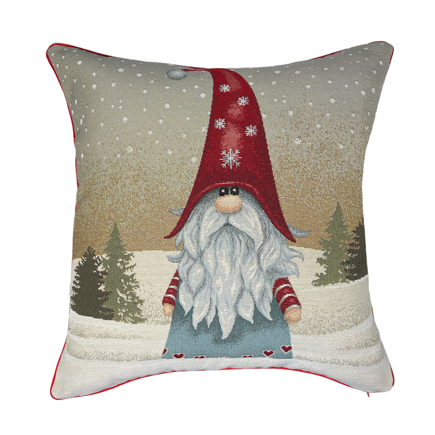 Decora la tua casa con il cuscino natalizio Karì, realizzato in pregiato tessuto Gobelin con filato Lurex che dona un tocco luminoso e festivo. Sfoderabile con zip, è completo di imbottitura in morbida fibra anallergica per il massimo comfort.