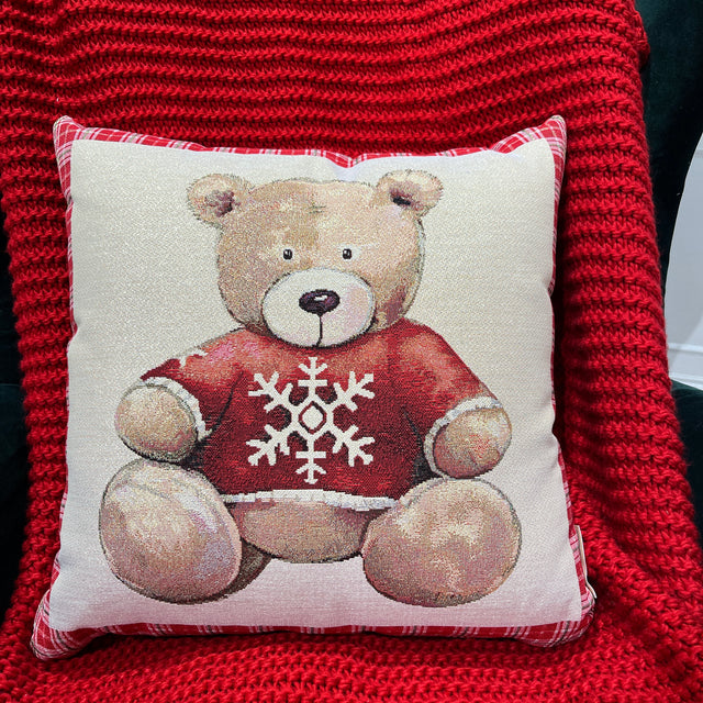 Decora la tua casa con il cuscino natalizio Karì, realizzato in pregiato tessuto Gobelin con filato Lurex che dona un tocco luminoso e festivo. Sfoderabile con zip, è completo di imbottitura in morbida fibra anallergica per il massimo comfort.
