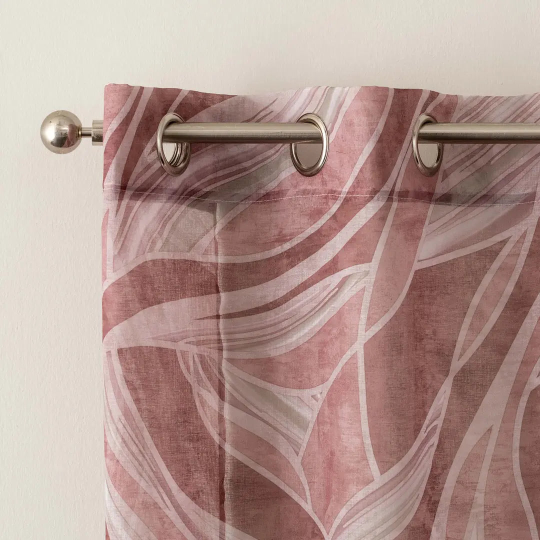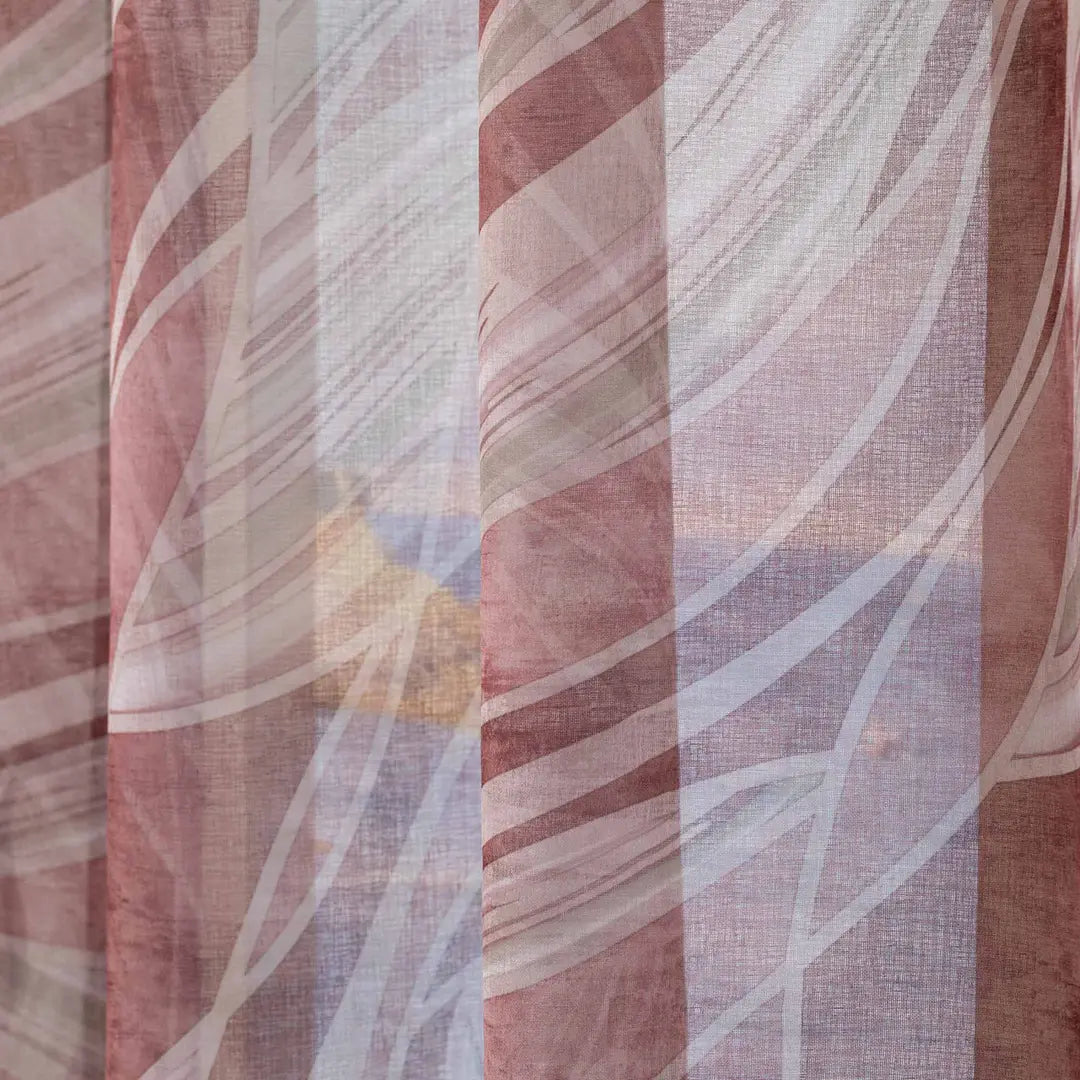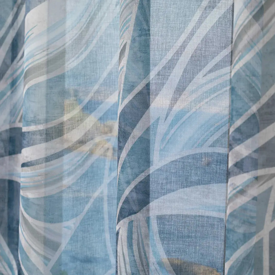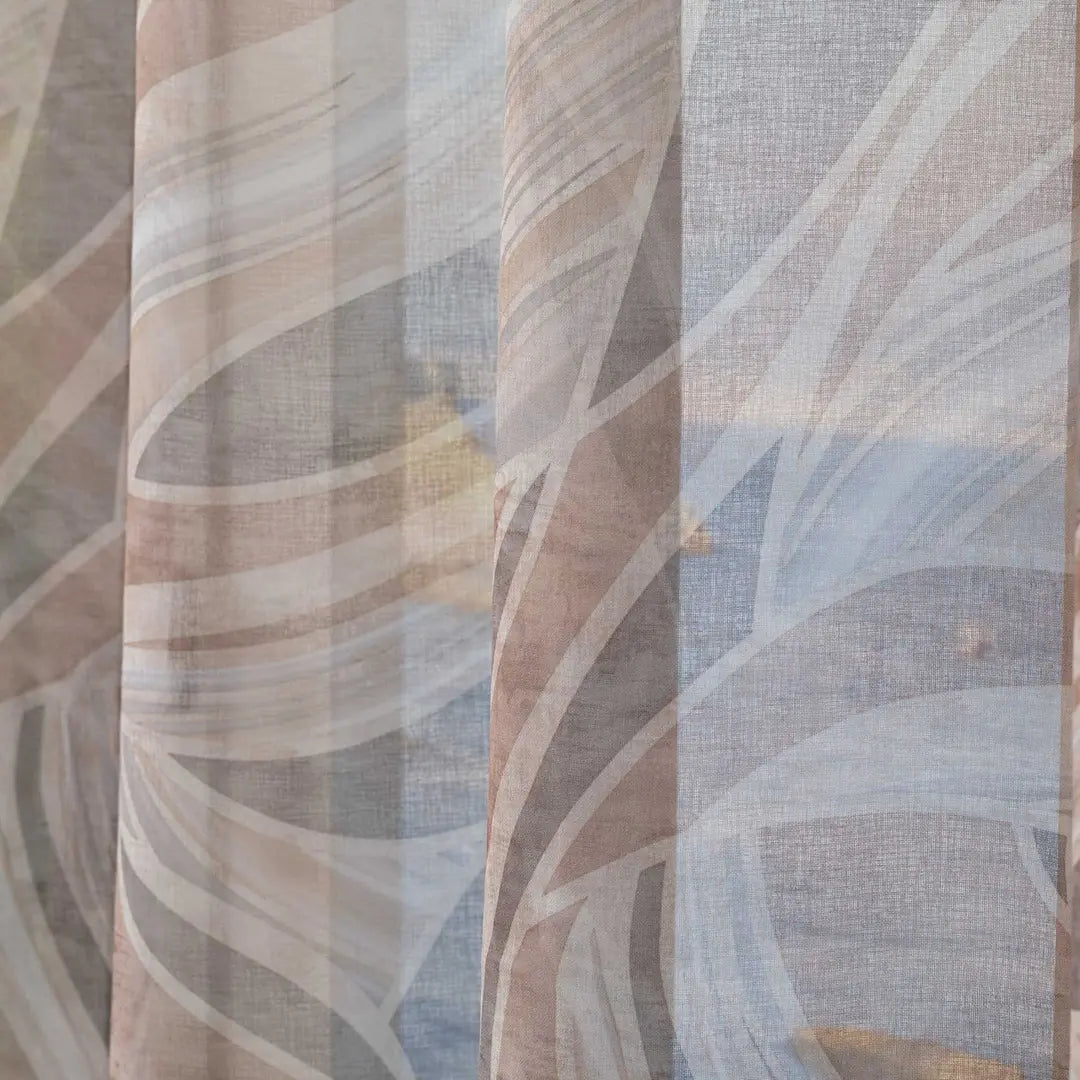 Tenda confezionata con borchie, tessuto semitrasparente. Finitura con piombo.