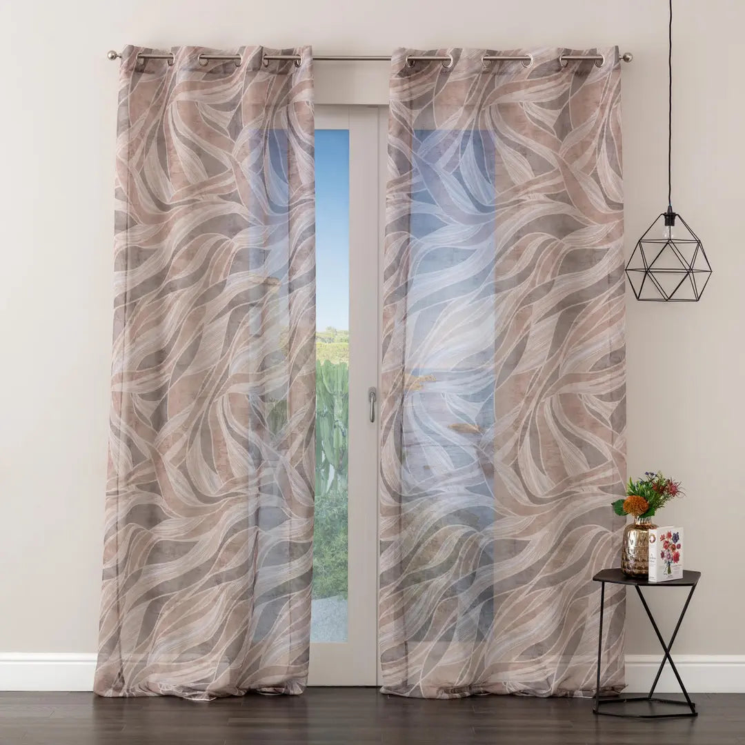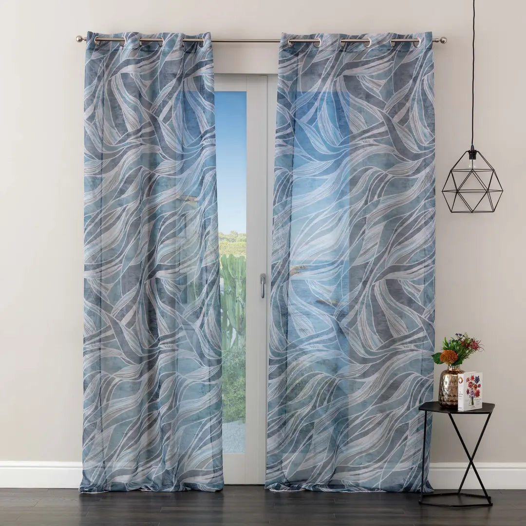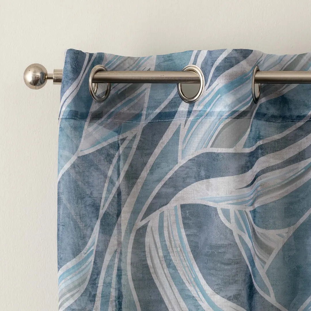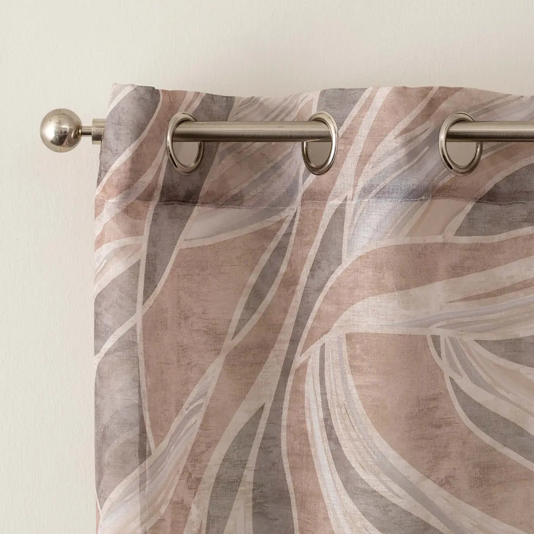 Tenda confezionata con borchie, tessuto semitrasparente. Finitura con piombo.