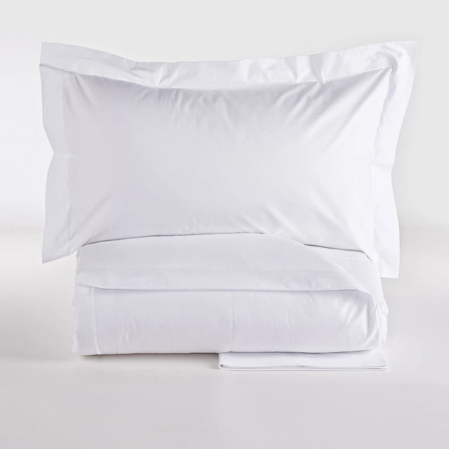 Il tessuto percalle, caratterizzato da una trama fitta e regolare, garantisce resistenza ai lavaggi e un’elegante sensazione di freschezza ad ogni notte. L’elevato numero di fili per pollice conferisce al completo un tocco vellutato e una durata superiore nel tempo.