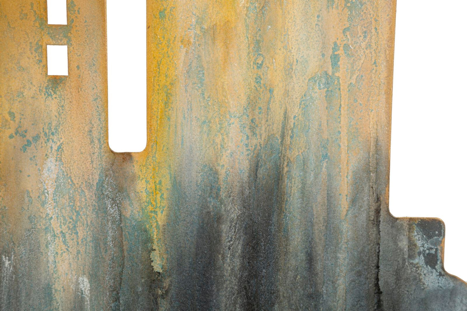 Un complemento d’arredo unico e scenografico: richiama il profilo di una città moderna con un raffinato effetto sfumato nei toni dell’oro e del grigio. La struttura in metallo dorato, dal design geometrico ed essenziale, sostiene un piano rettangolare perfetto per decorare l’ingresso, il soggiorno o la zona living con stile contemporaneo. Un pezzo d’arredo che diventa protagonista, ideale per chi cerca originalità e design.