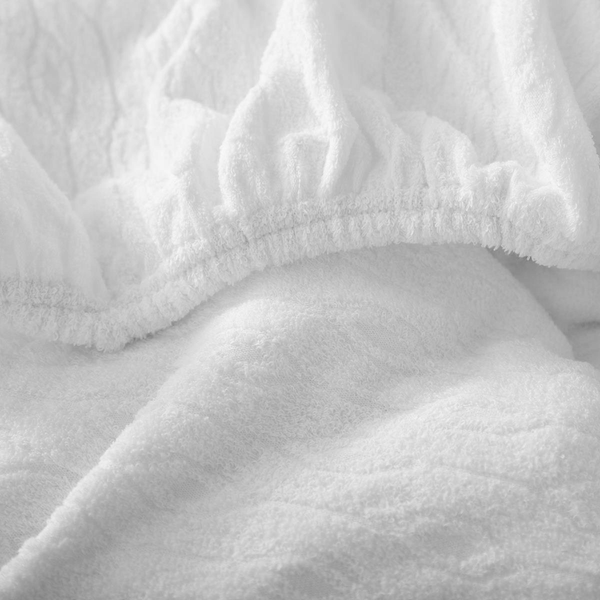 Coprimaterasso protector Sanitario impermeabile in grado di vestire perfettamente qualsiasi misura di materasso, senza produrre pieghe e senza scivolare. La parte superiore, realizzata in morbida spugna di cotone e poliestere, dona comfort ed assorbe l'umidità in eccesso.