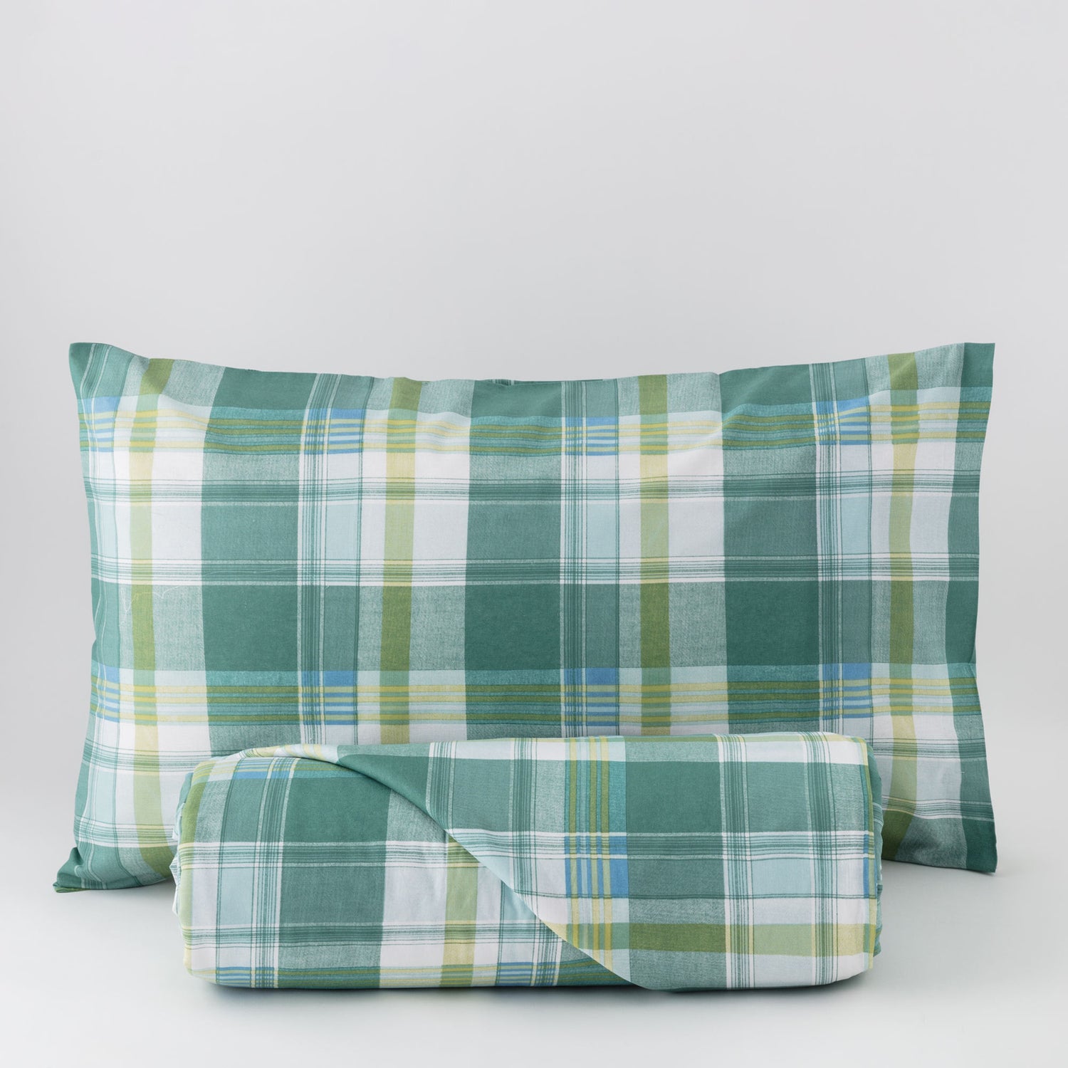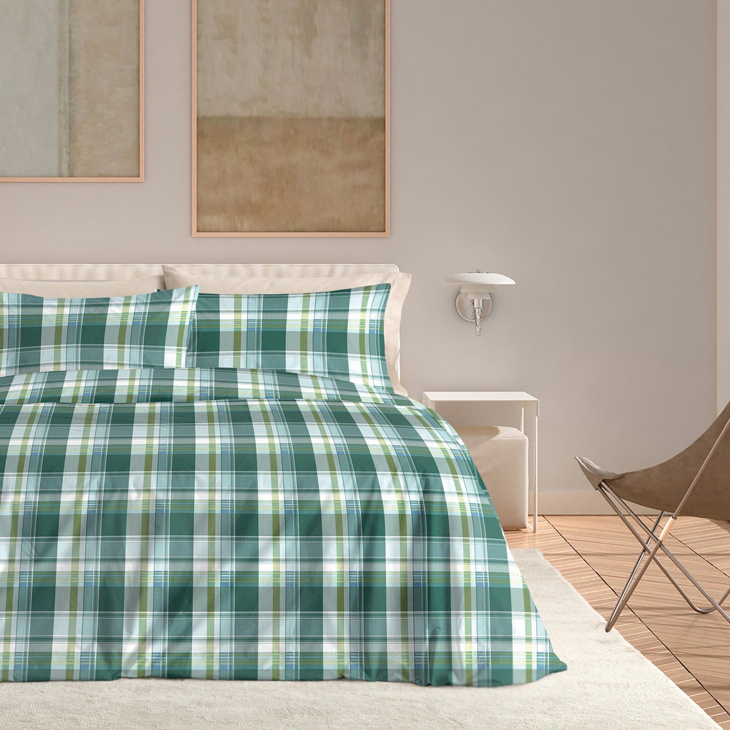 La confezione contiene un sacco copripiumino con chiusura con pattella e federe a sacco.