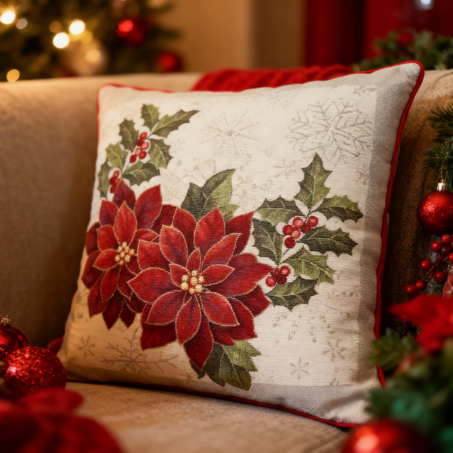 Decora la tua casa con il cuscino natalizio Karì, realizzato in pregiato tessuto Gobelin con filato Lurex che dona un tocco luminoso e festivo. Sfoderabile con zip, è completo di imbottitura in morbida fibra anallergica per il massimo comfort.