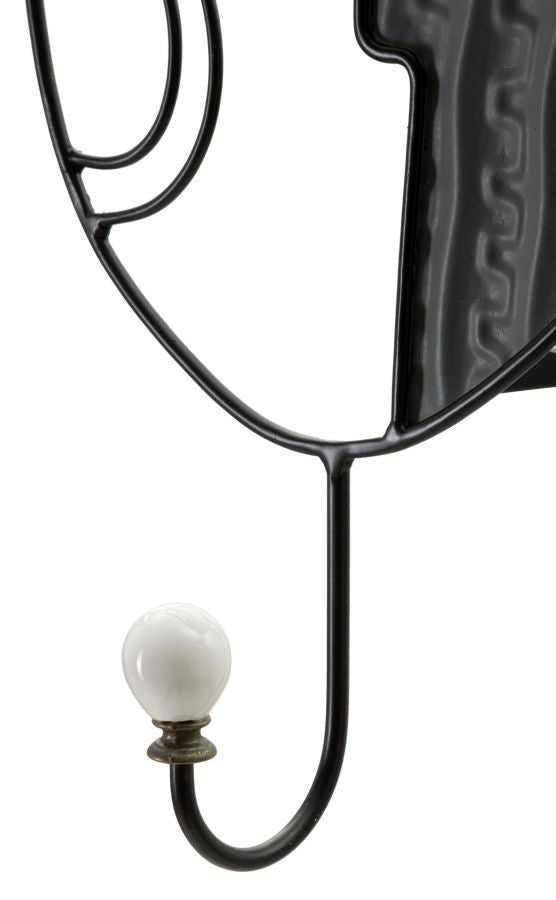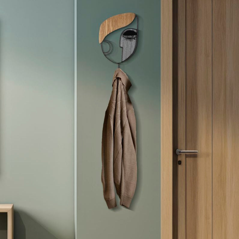 Appendiabiti in metallo e legno a forma di volto che richiama l'arte cubista.