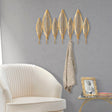 APP/ABITI LONG LEAF - Appendiabiti da parete in metallo dorato composto da foglie alternate finemente intagliate. Completo di 7 ganci.
