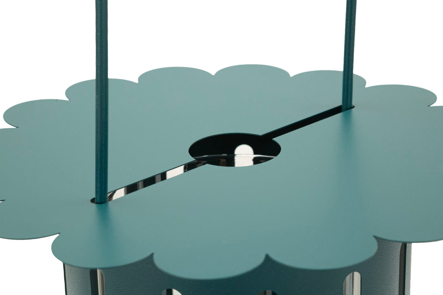Versione in tonalità ottanio della lanterna Saturno. L’effetto satinato e il design essenziale la rendono un elemento decorativo contemporaneo, ideale per terrazze o living dallo stile nordico.
