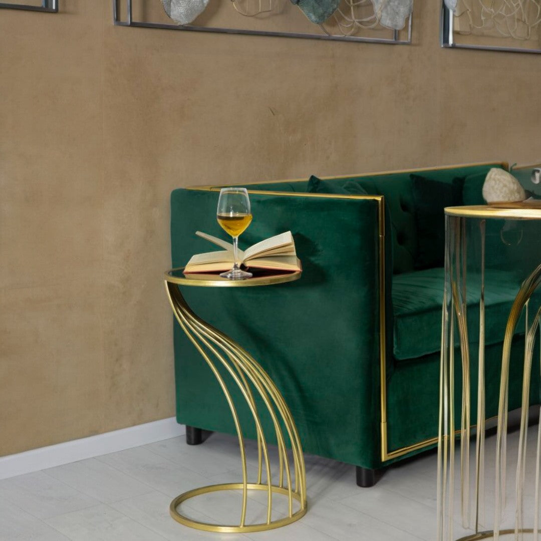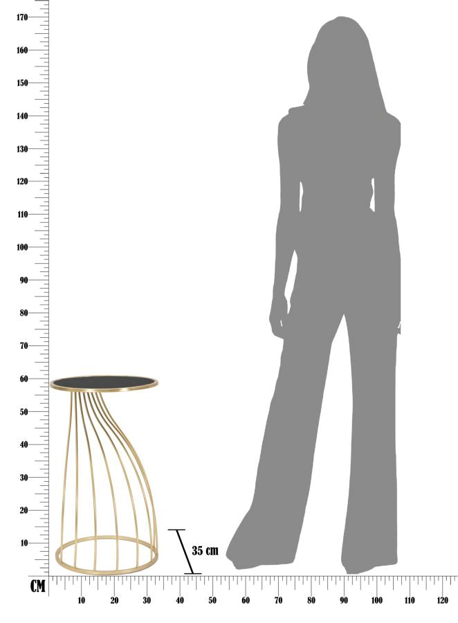 P/TELEFONO FLUSH - Tavolinetto portatelefono in metallo e vetro dalle linee sinuose e accattivanti. Il dorato abbinato al nero crea un forte impatto. Un elemento lussuoso e glam per la tua casa.